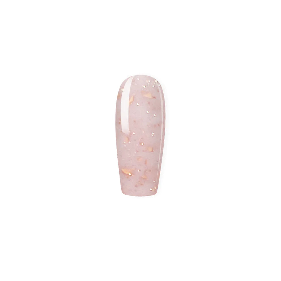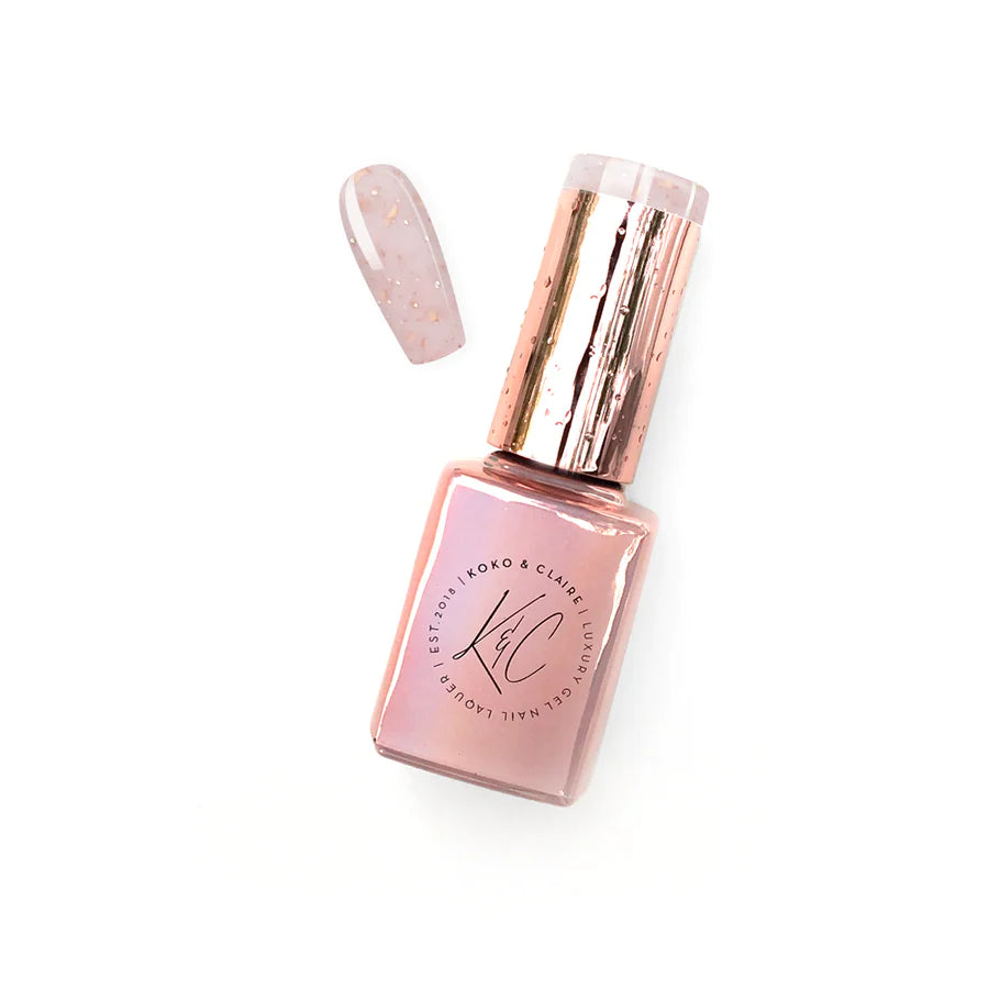 A gorgeous peachy pink with multi-sized bronze gold sparkle flakes in our signature builder formula.