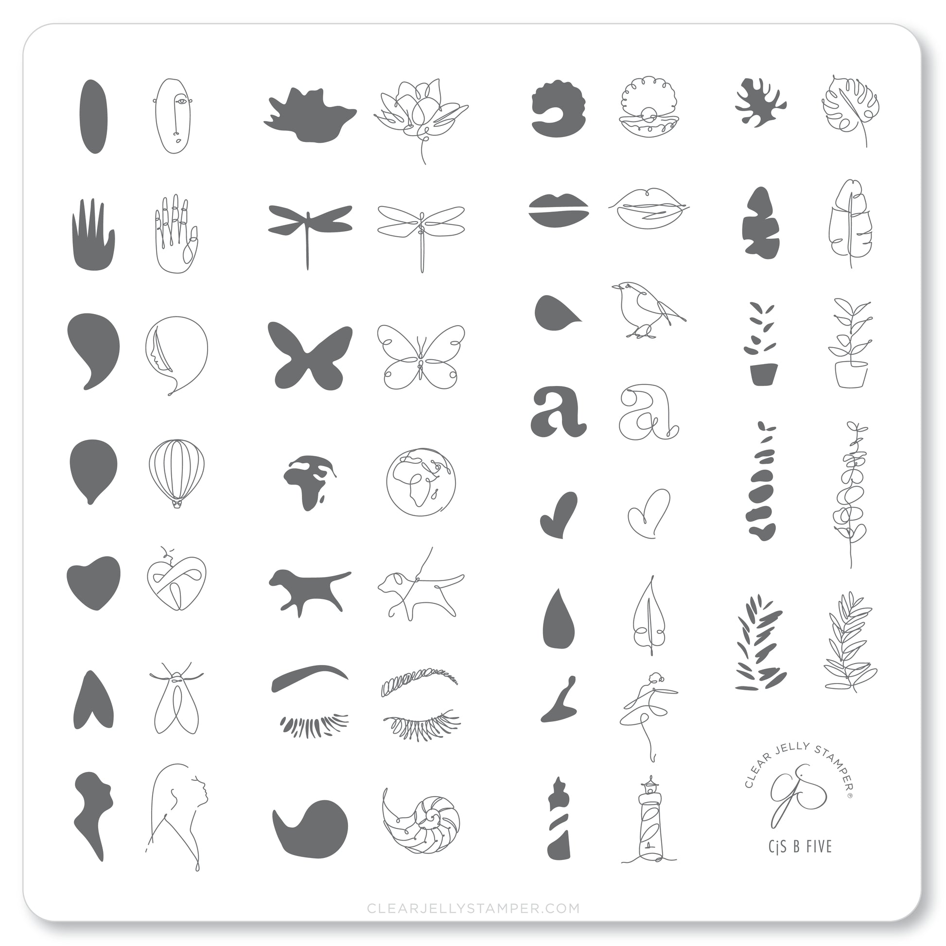 Discover the fun of layered stamping with B-Five, part of our beginner series! Designed with simplicity in mind, this plate features adorable two-layer designs that make it easy to get creative—fast. With cute abstract-style images of dragonflies, butterflies, lips, leaves, and flowers, it’s the perfect pick for nail art lovers who want quick, beautiful results without the stress. Fun, fresh, and oh-so-easy to use!