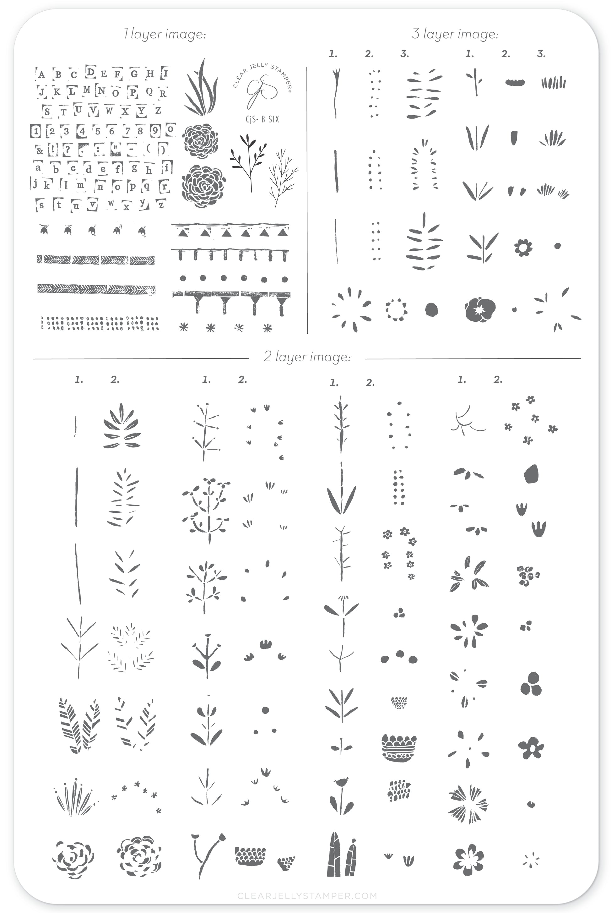 Beginner Edition (CjS-B-SIX) Etched Nail Art Stamping Plate