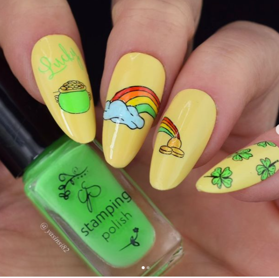 Bring some Irish luck to your nails with the CJS H-104 Luck stamping plate from Clear Jelly Stamper! Featuring St. Patrick's Day-themed designs such as shamrocks, Celtic symbols, and a leprechaun's pot of gold at the end of the rainbow. This steel-layered plate is perfect for celebrating March 17th.