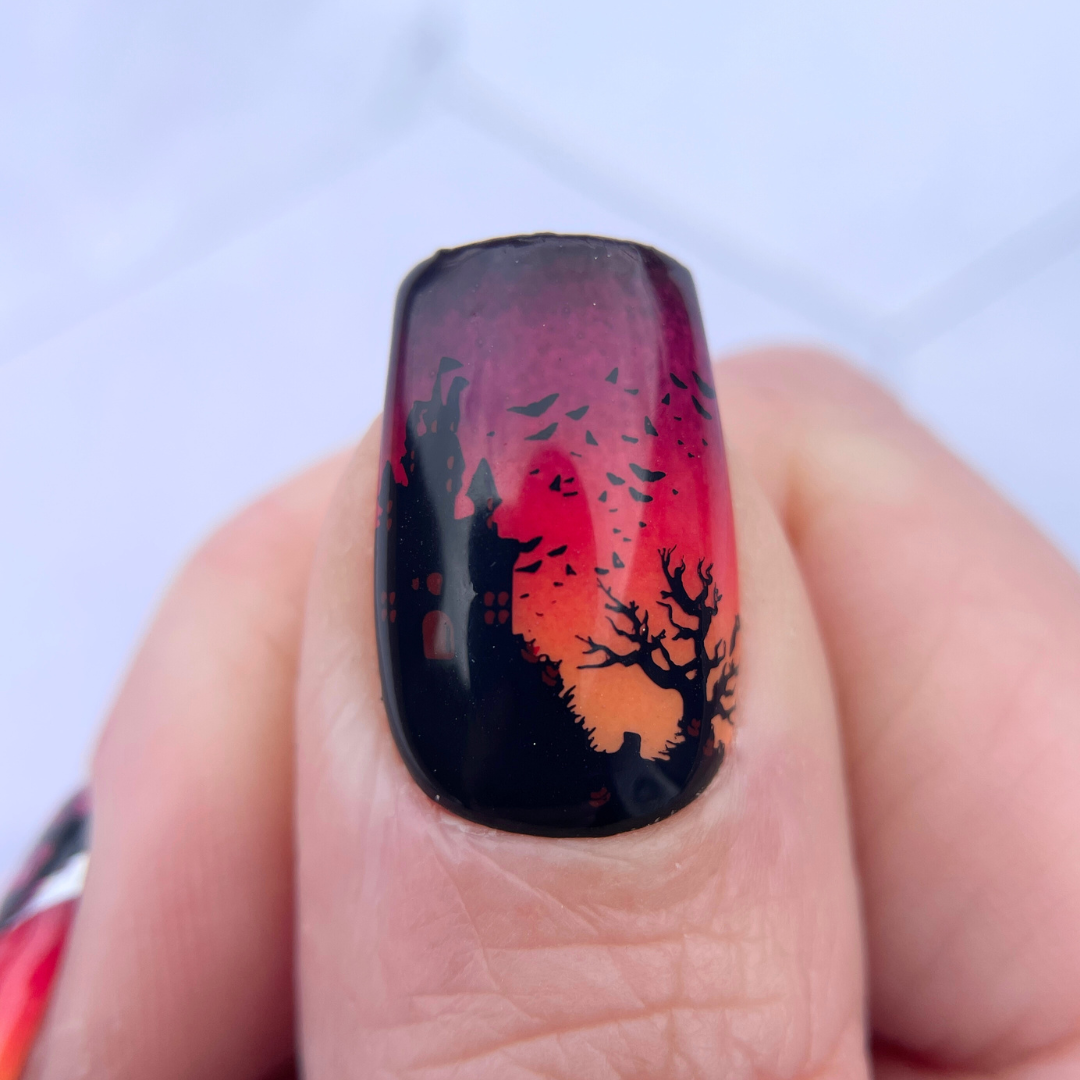 This plate offers intricate and detailed designs that capture the essence of the supernatural and macabre. Whether you're conjuring up a manicure fit for a night of trick-or-treating or simply indulging in some hauntingly beautiful nail art, the "Creepy Hollow" stamping plate provides endless inspiration for creating ghoulishly delightful designs.