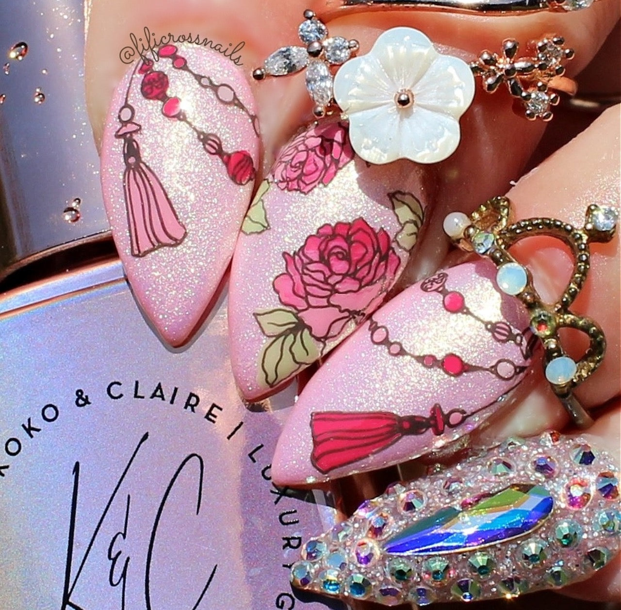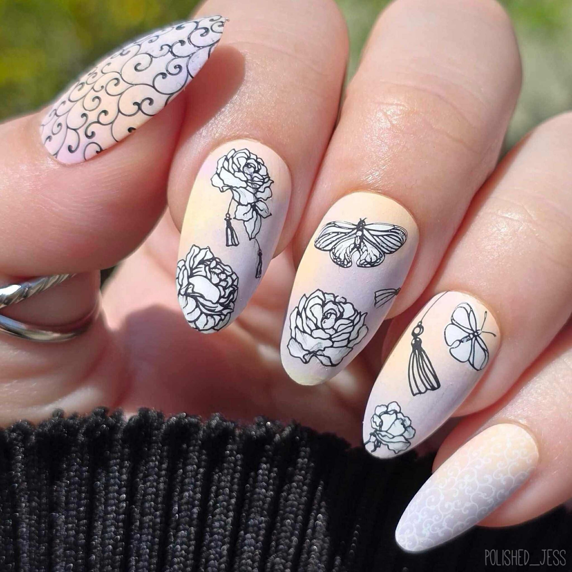 Do you love everything delicate, dainty, and elegant? This gorgeous plate has all that you need from flowers to butterflies to tassels to decorate your mani!