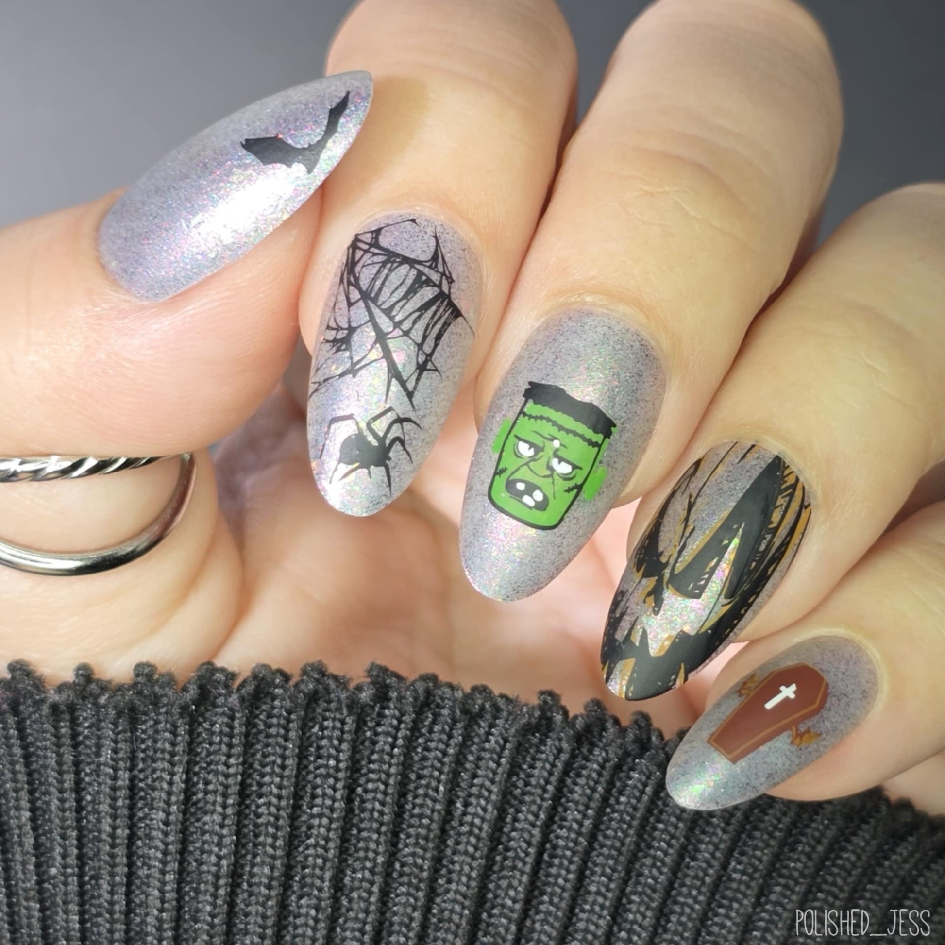At the heart of this eerie ensemble, you'll find Frankenstein's fearsome creation, Frankenstein's monster, ready to make a bolted appearance on your nails. Dracula, the classic vampire, lurks in the shadows, poised to add a touch of immortal allure to your nail art. Zombies and ghouls emerge from the depths of the underworld, their decaying visages perfect for a ghoulishly glamorous look.
