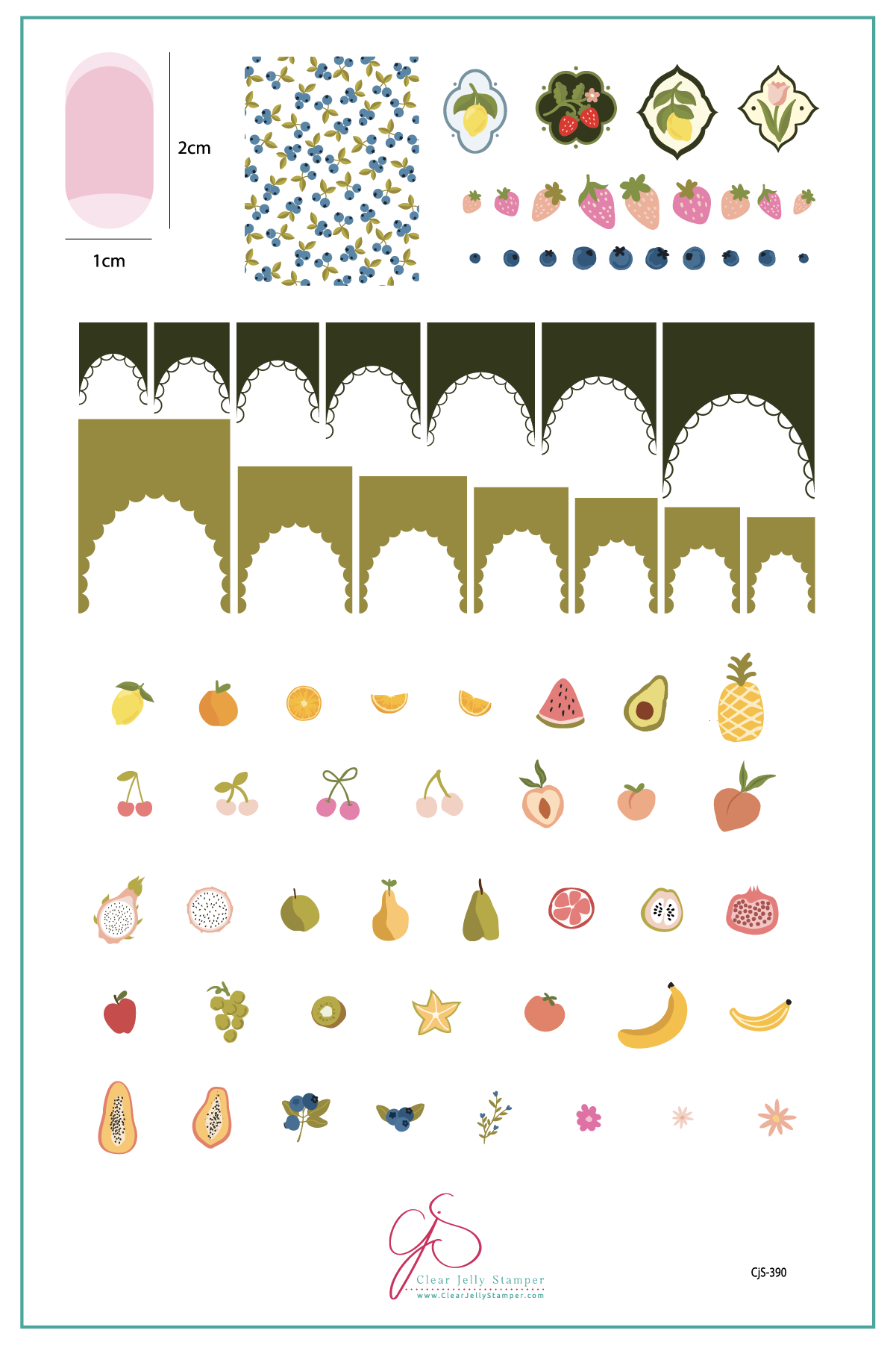 Frilly Fruit (CjS-390) Etched Nail Art Stamping Plate