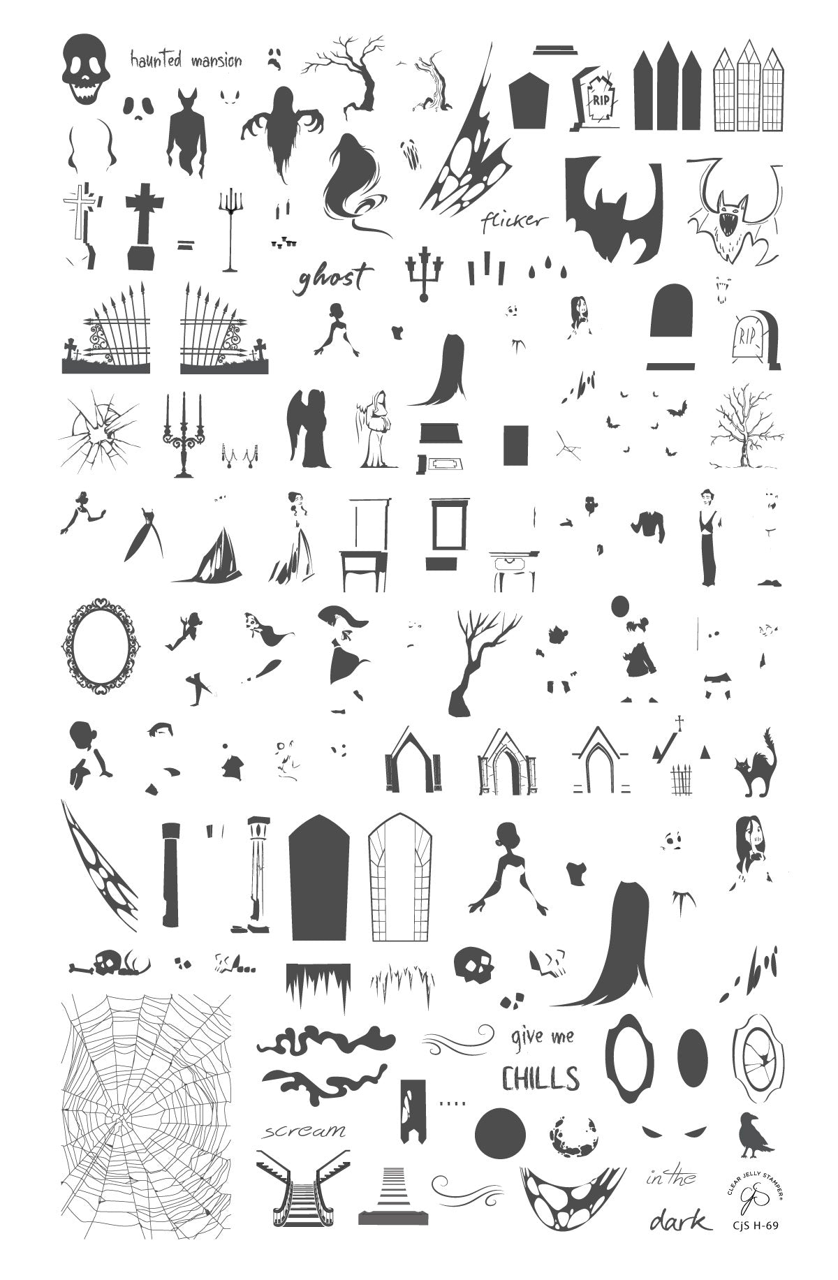 Step into the eerie world of Halloween with the "Give Me Chills" nail art stamping plate by Clear Jelly Stamper (H-69). This spine-tingling plate invites you to embrace the macabre with its hauntingly glamorous designs, perfect for conjuring up bewitching manicures that are sure to give you chills.