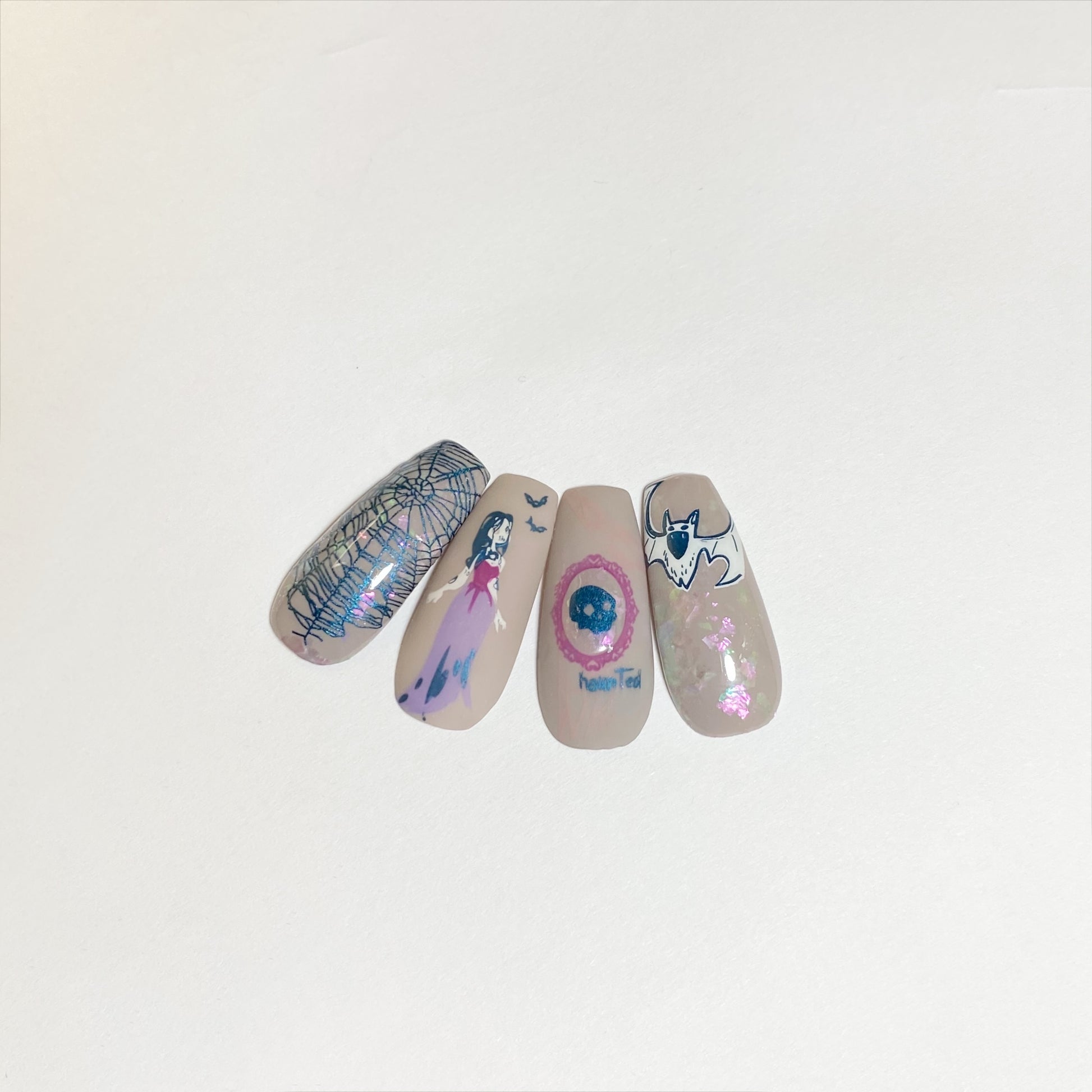 Indulge your inner sorceress with glamorous witches casting spells, while bats flutter overhead and ghosts roam the night. Skulls, candlesticks, mirrors, and clocks add an eerie elegance to your manicures, while cobwebs lend an air of spooky sophistication.