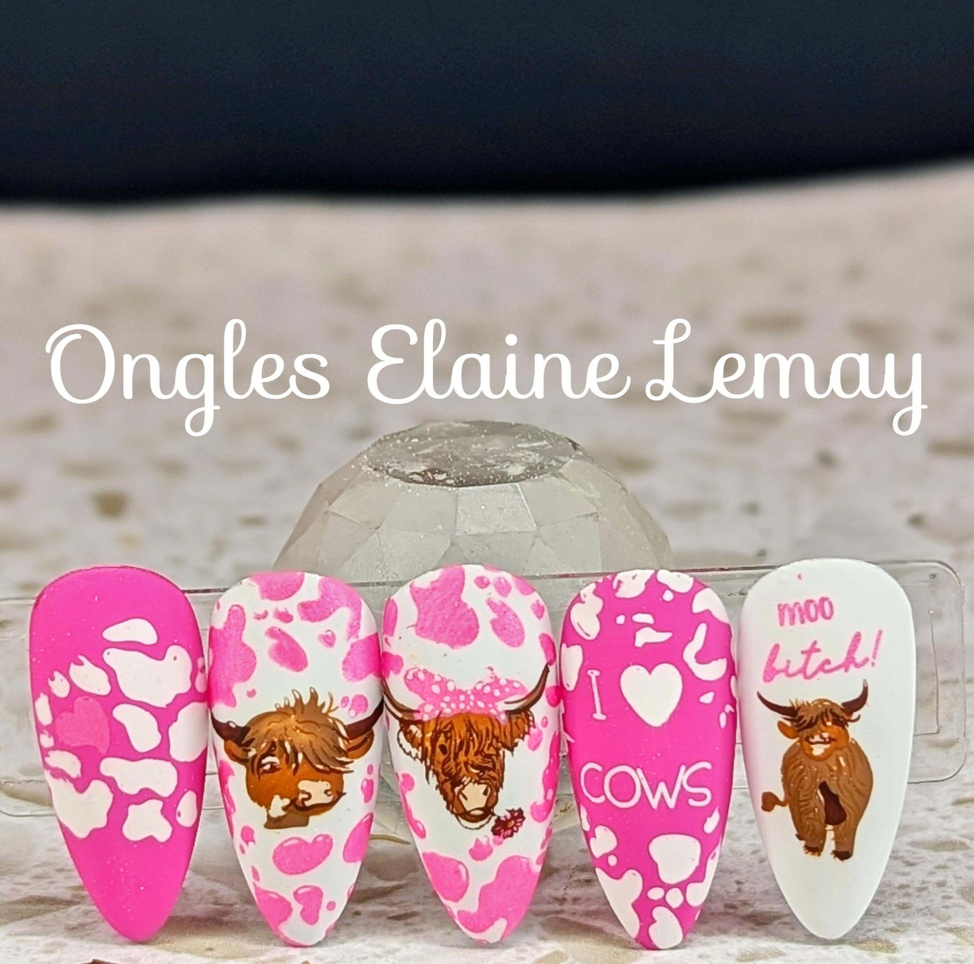 This delightful plate features an array of cute Highland cow designs, perfect for adding a whimsical touch to your nail art.