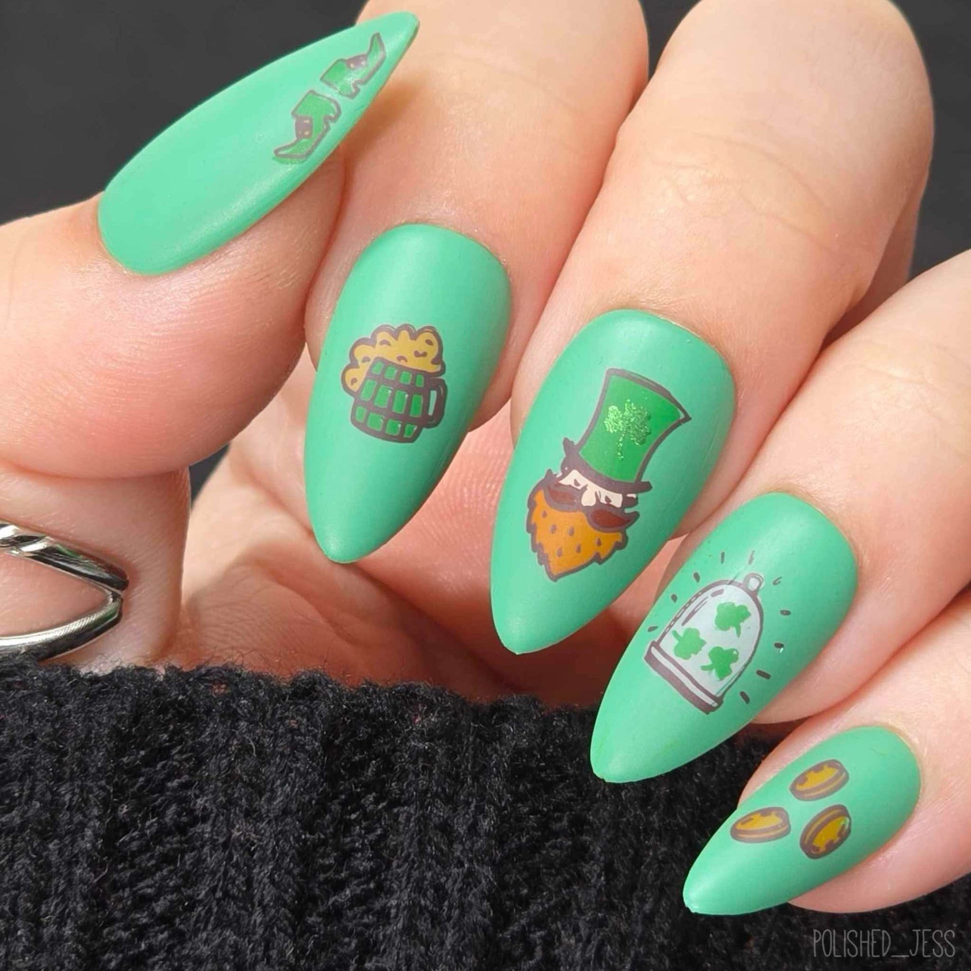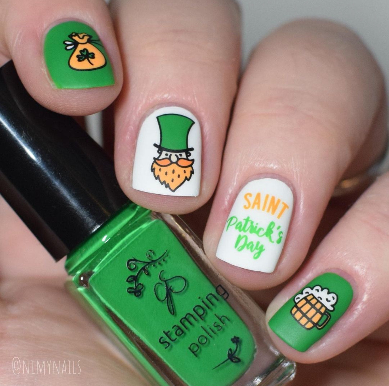Get in the festive mood and decorate your nails this St. Paddy's Day with this adorable good luck charm plate! From mugs or beer and lucky gold coins to four-leaf clovers ad cute leprechauns. There are so many designs to choose from on this plate.