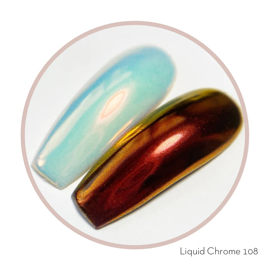 Introducing the one and only KoKo & Claire Liquid Chrome 108! Conjure up some unicorn magic with this liquid chrome that'll have eyes popping with all its iridescent glory. Go bold with fiery reds, coppers, and golds over dark colours, or transform white and light colours into something straight out of a fairy-tale! Shine bright like the star you are with the amazing Liqui-chrome for the chill look you crave.