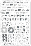 Rock the "LoVe Notes" with this full-coverage CjSV-12 Steel Nail Art Layered Stamping Plate! It's a masterpiece of hearts, lips, XOXO's and much more for all your kissin', lovin' and be-minin' needs. From perfecting your amore game to playing tic-tac toe with your music notes, you'll never be lost for love!