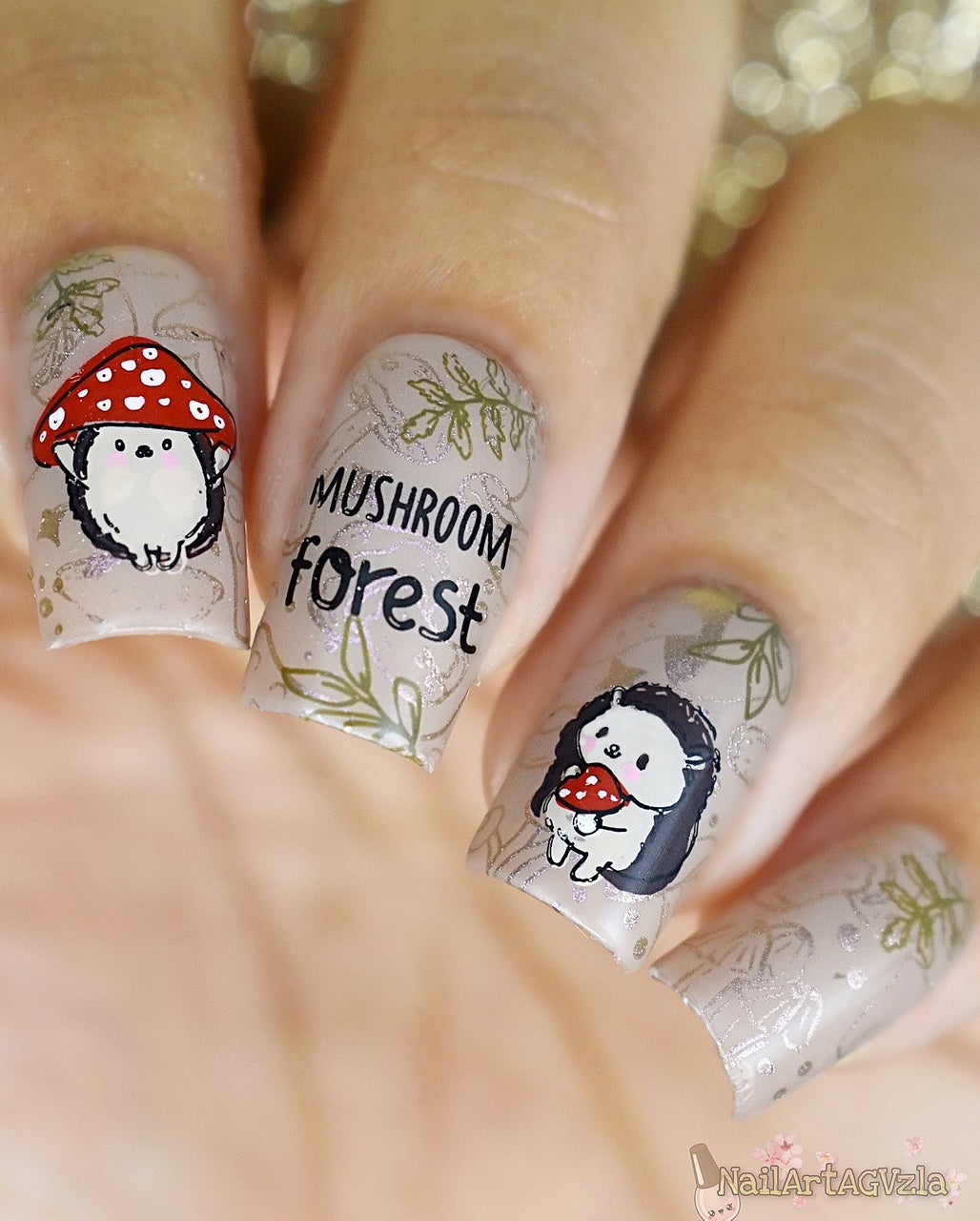 The CJS-369 "Mushroom Forest" by Clear Jelly Stamper is a whimsical, layered nail art stamping plate. It features various cute, animated, and cartoon-style designs, including mushrooms, toadstools, and a charming hedgehog. Perfect for creating enchanting nail art with a forest theme, each design can be layered for a detailed and vibrant look. Ideal for anyone who loves playful and nature-inspired nail art.