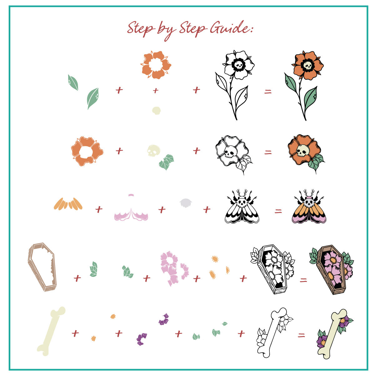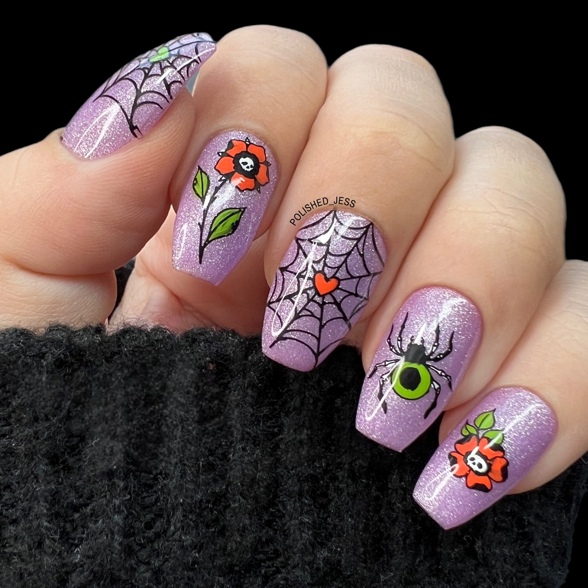 Introducing the To be Determined (CjSH-91) Steel Nail Art Layered Stamping Plate for those seeking to dress up their digits! Get festive with happy Halloween-themed images like spiders & webs, coffins, flowers, moths, skulls, and mushrooms. Or, for those looking for something a bit sweeter, stamp hearts, bones, and other symbols of love. A guaranteed scream!